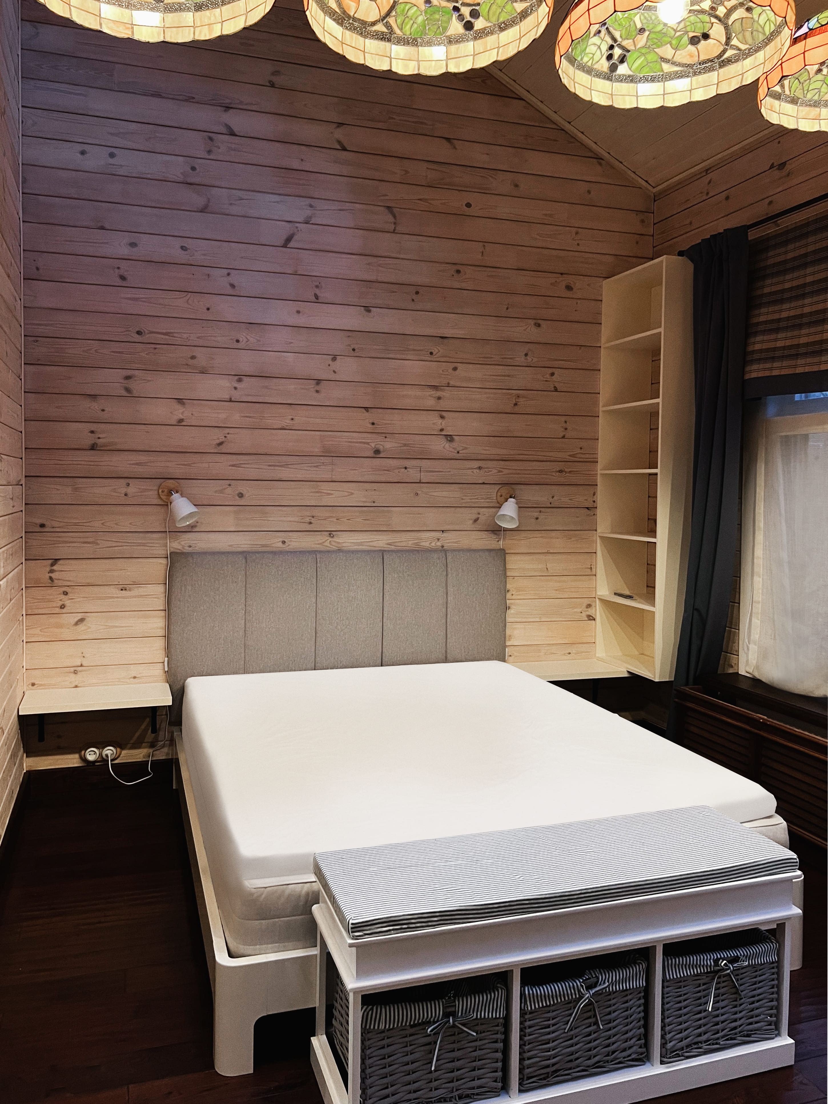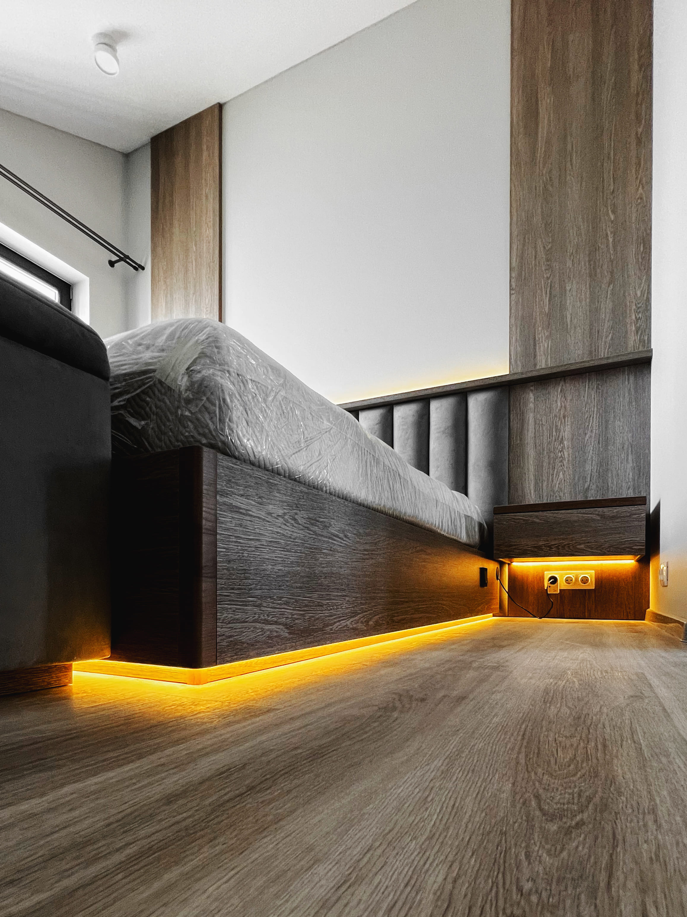 - Определиться с размером кровати и типом матраса. Будет ли нужен подъемный механизм для хранения вещей в основании кровати.